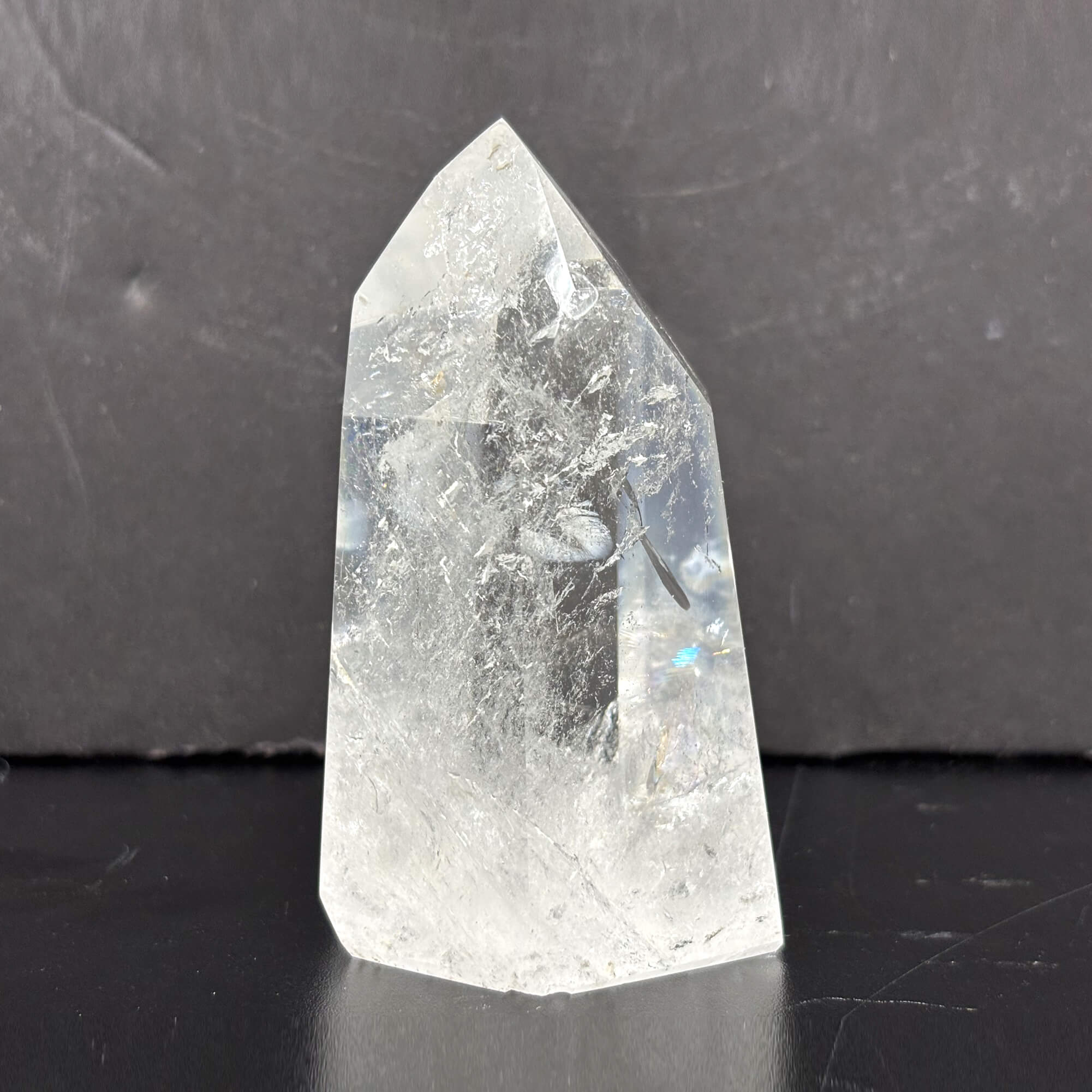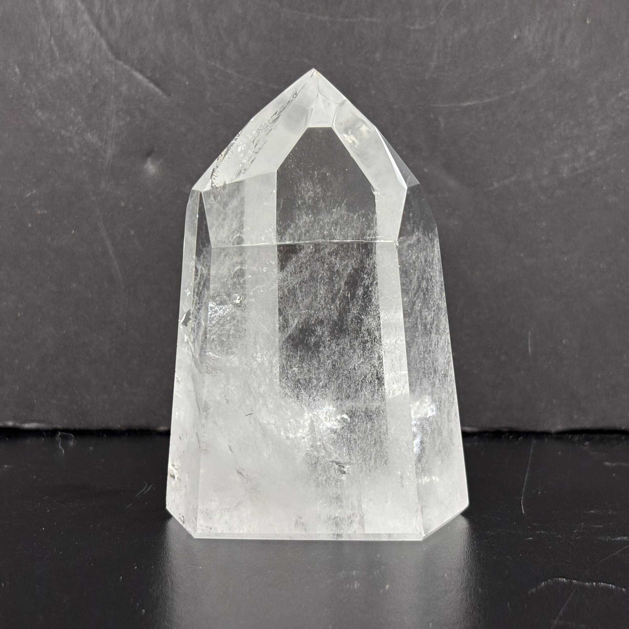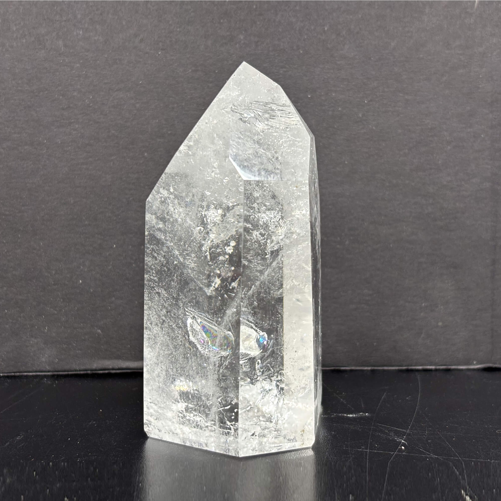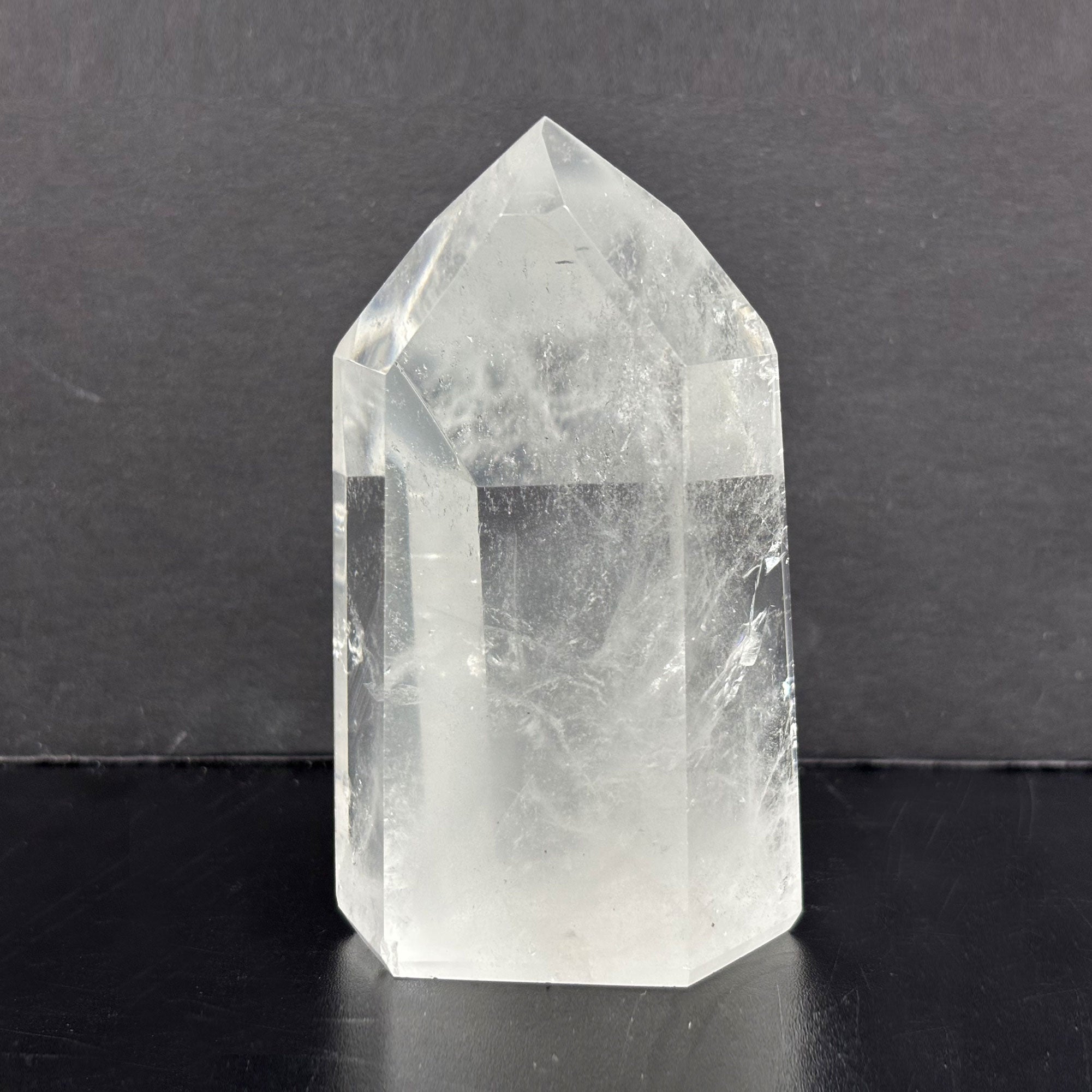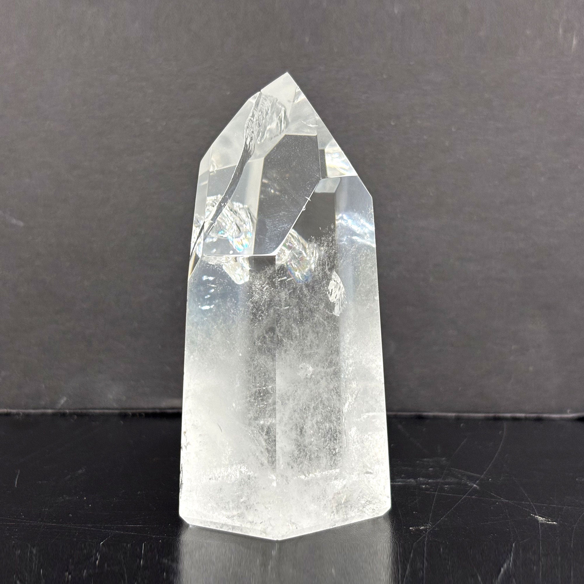 Introducing our Natural Clear Quartz Tower, a stunning and powerful crystal point meticulously crafted from high-quality Brazilian quartz. The crystal's natural clarity and smooth, glossy finish make it a beautiful addition to any space.