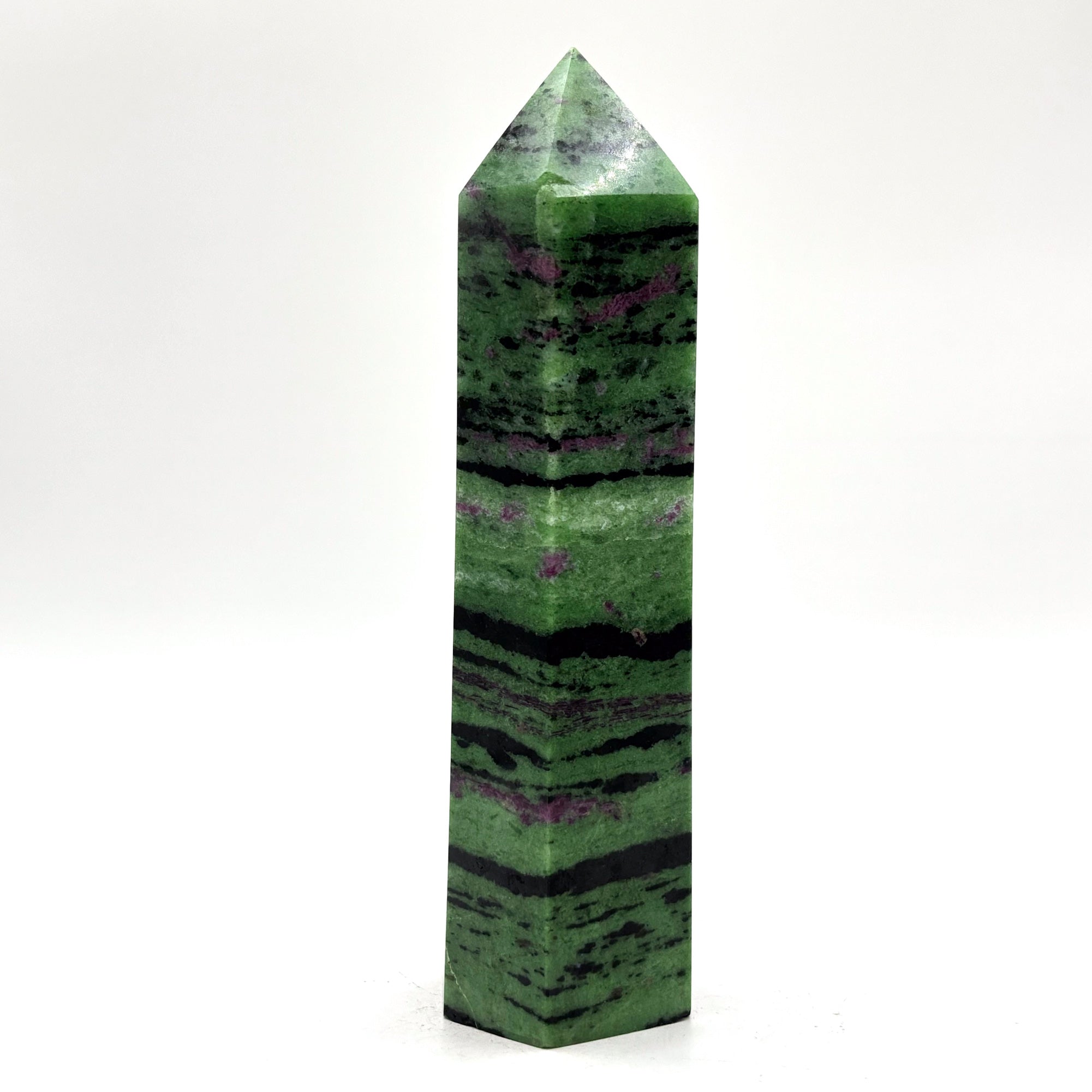 Experience the natural beauty of our Ruby Zoisite Crystal Obelisk Tower Point. Crafted from high-quality, ethically-sourced Ruby Zoisite, this crystal is known for its vibrant red and green colors, creating a striking contrast that catches the eye. The obelisk shape adds a touch of elegance and uniqueness to any space.