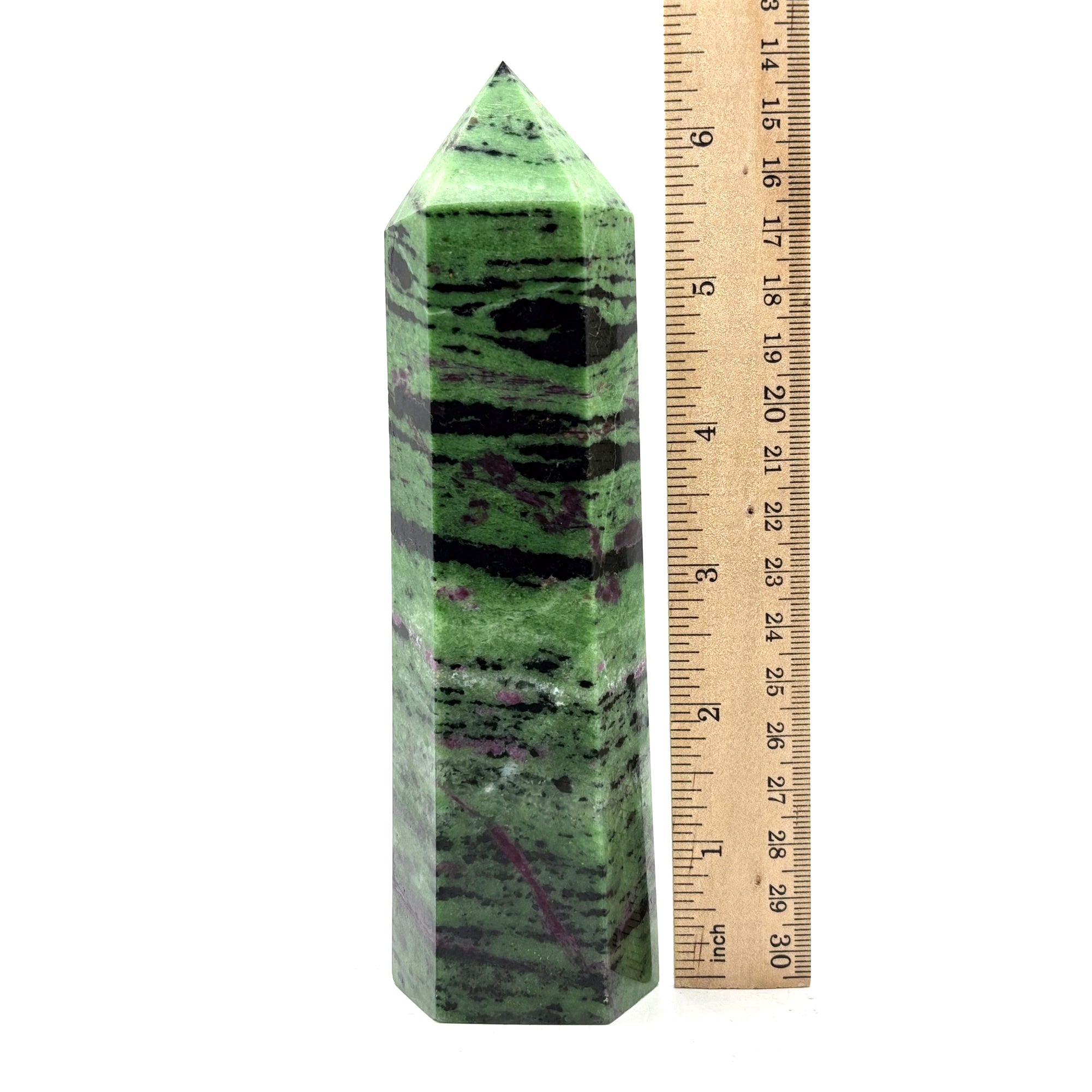 The Ruby Zoisite Obelisk Tower Point is more than just a decorative piece. It's a powerful tool for energy healing and meditation. This crystal is believed to enhance focus, creativity, and personal growth. Its obelisk shape is said to amplify and direct energy, making it an excellent choice for those looking to enhance their meditation or energy healing practices. Whether you're a seasoned crystal user or just starting, this Ruby Zoisite Obelisk Tower Point is a wonderful addition to your collection.