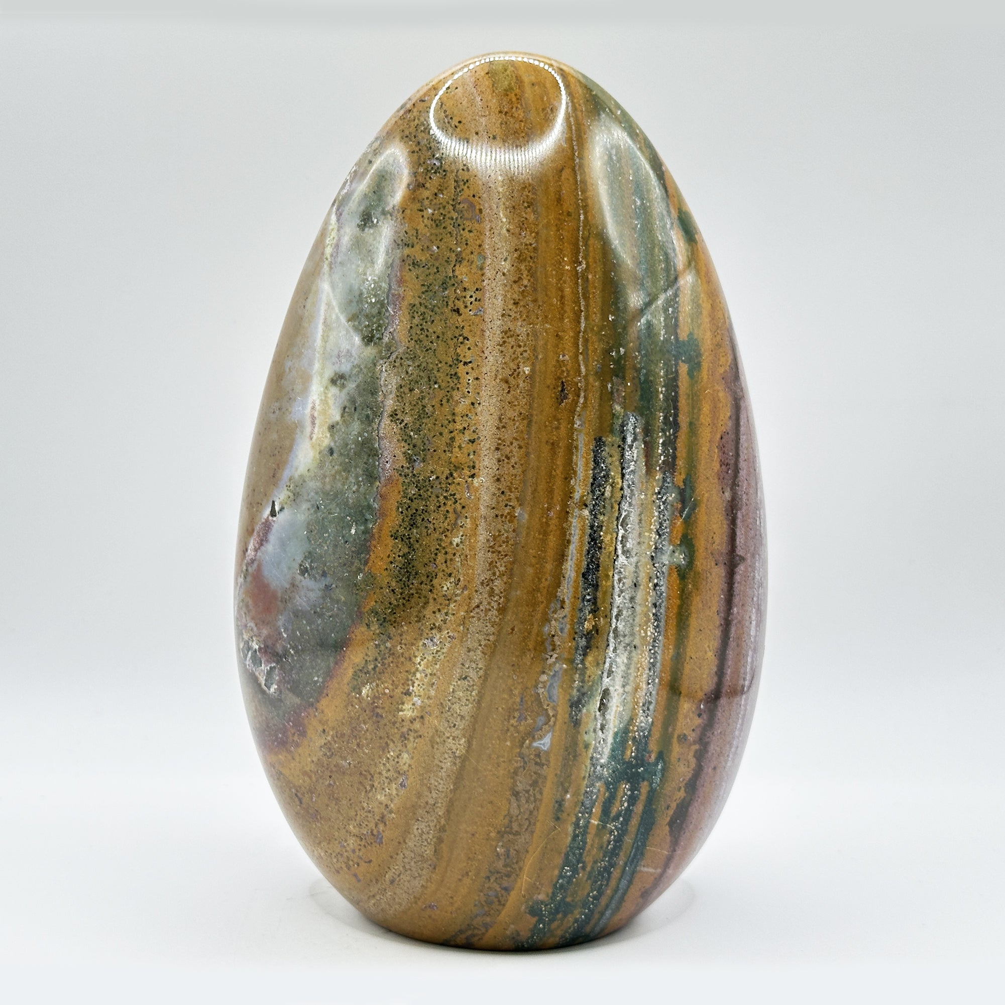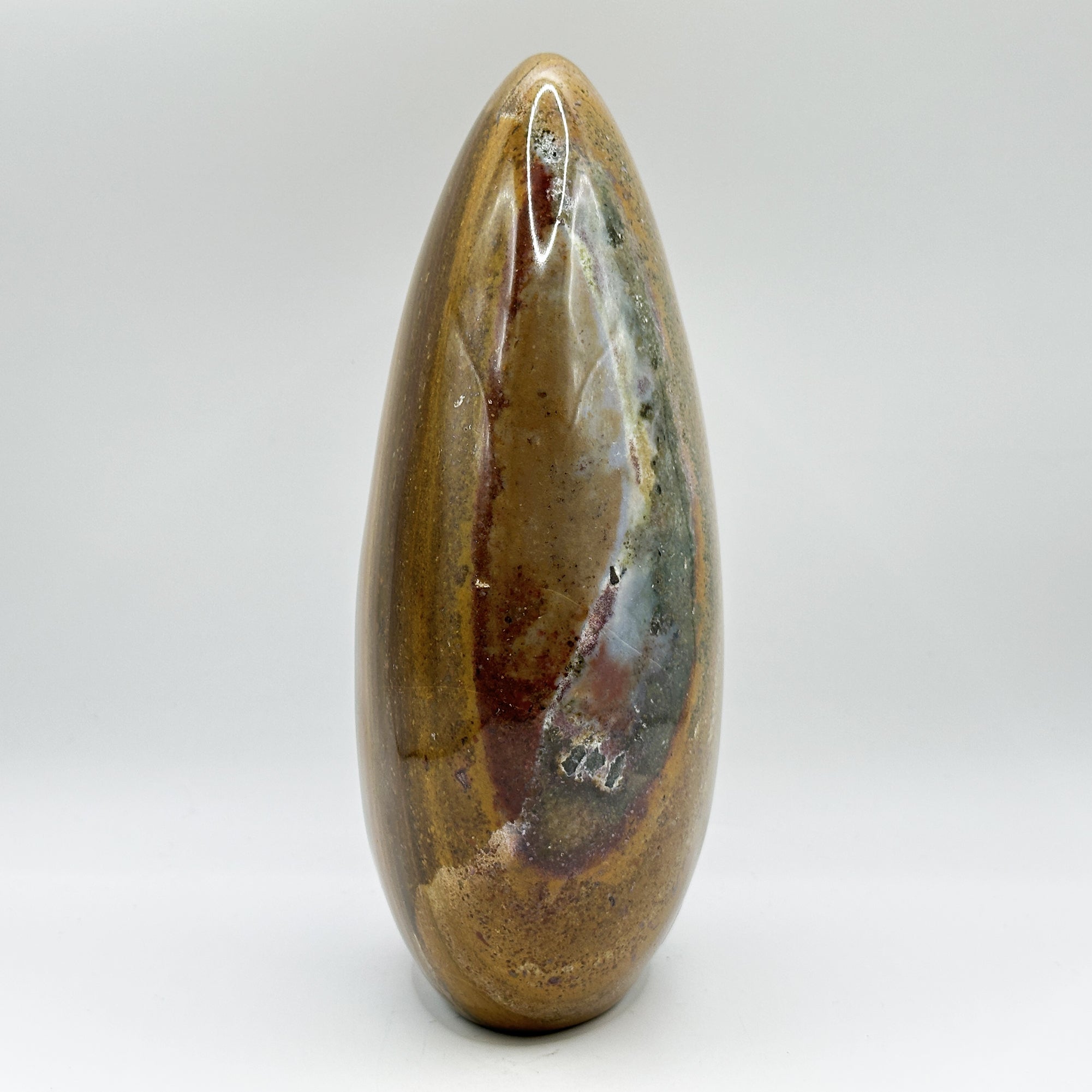 This stunning 7.5 inches Natural Self-Standing Polished Sea Jasper Freeform is sourced from Madagascar. Crafted from genuine Sea Jasper, this piece showcases intricate, swirling patterns in shades of red, brown, and cream. Its unique, organic form allows it to stand alone stably due to its balanced weight and smooth polish, making it a captivating addition to any decor or collection. A perfect gift for nature lovers, this polished gemstone is not only aesthetically pleasing but also implies the peace and tranquility that comes from the sea.