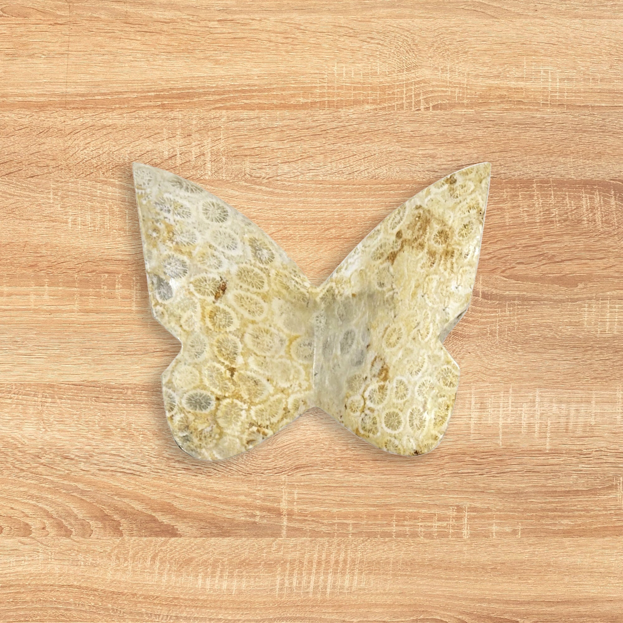 Fossilized Coral Butterfly Carving Natural Handcrafted Crystal Decor for Home & Gift - RAN555