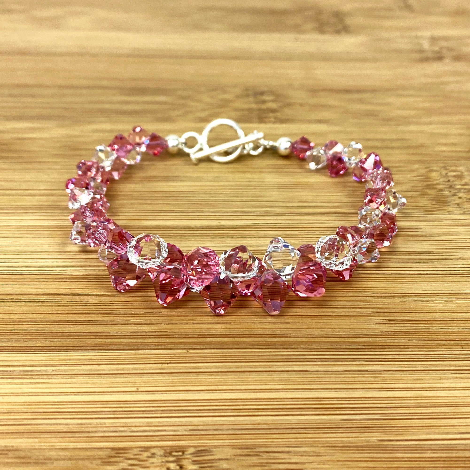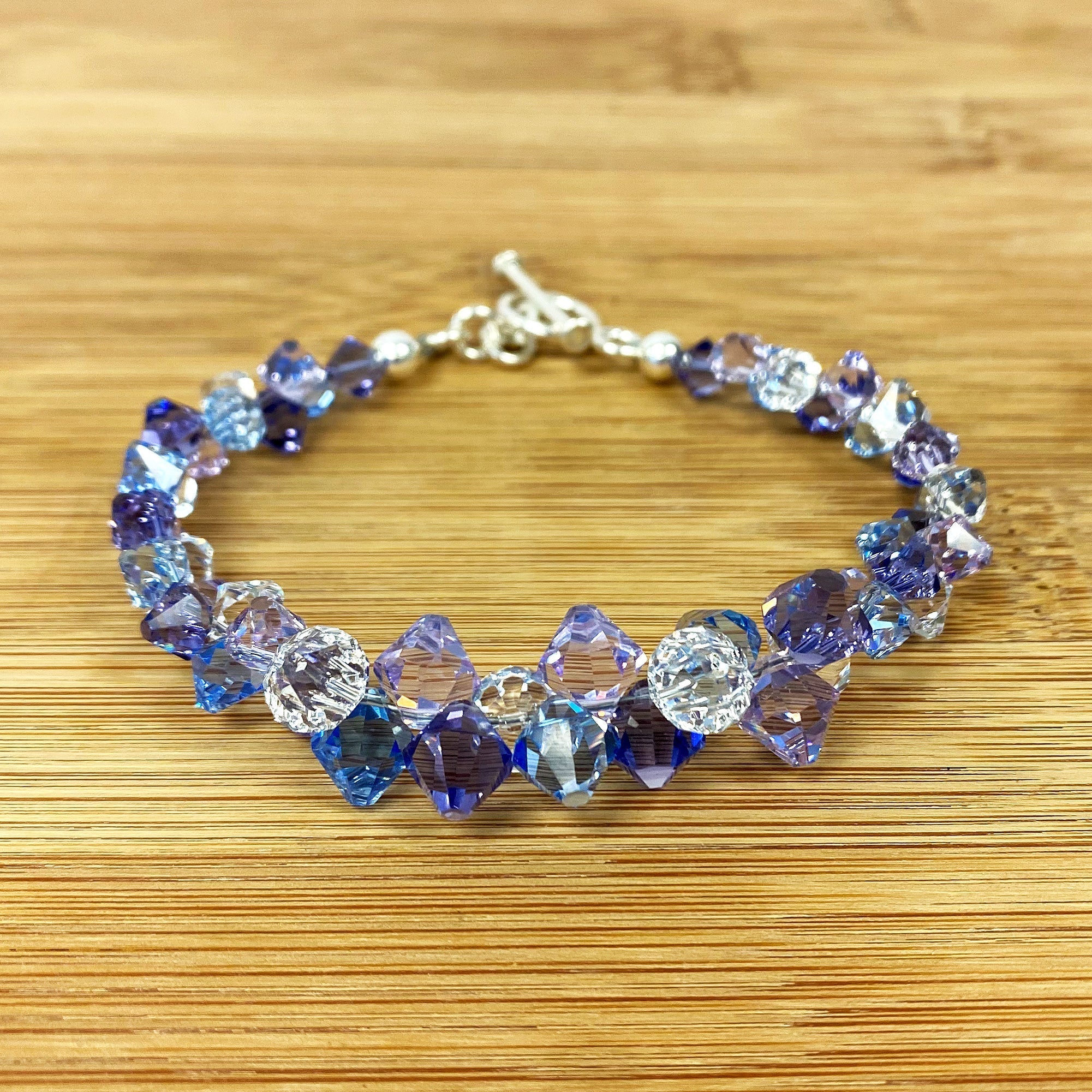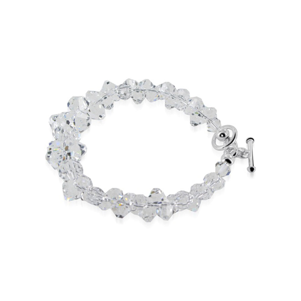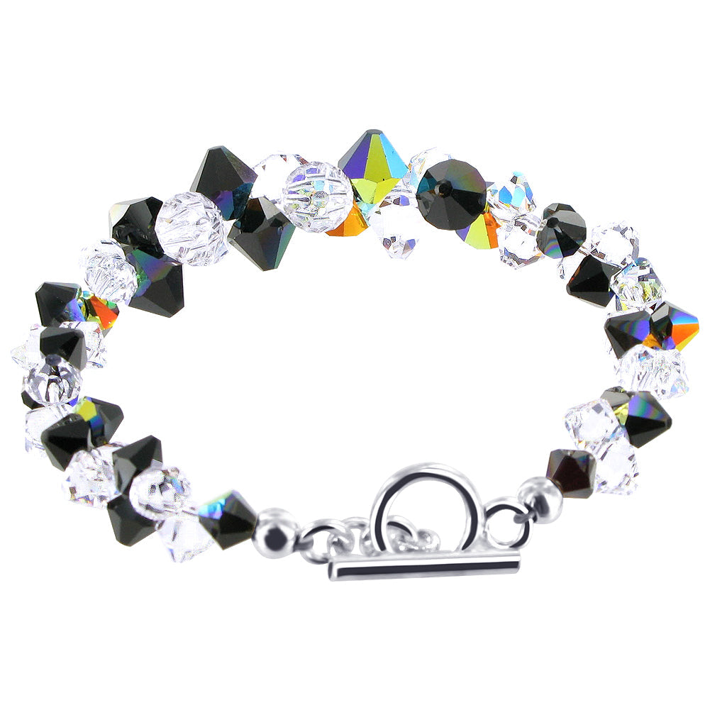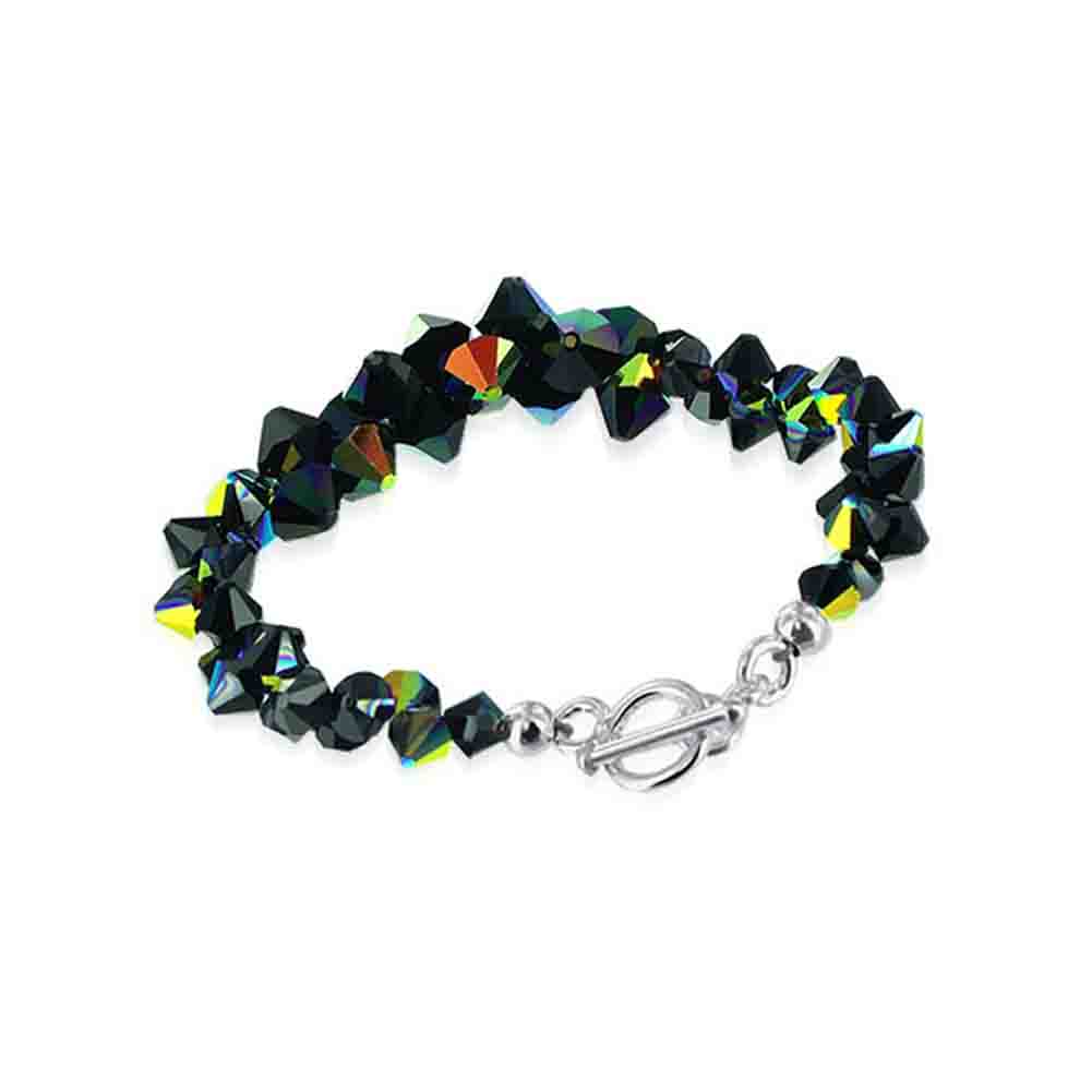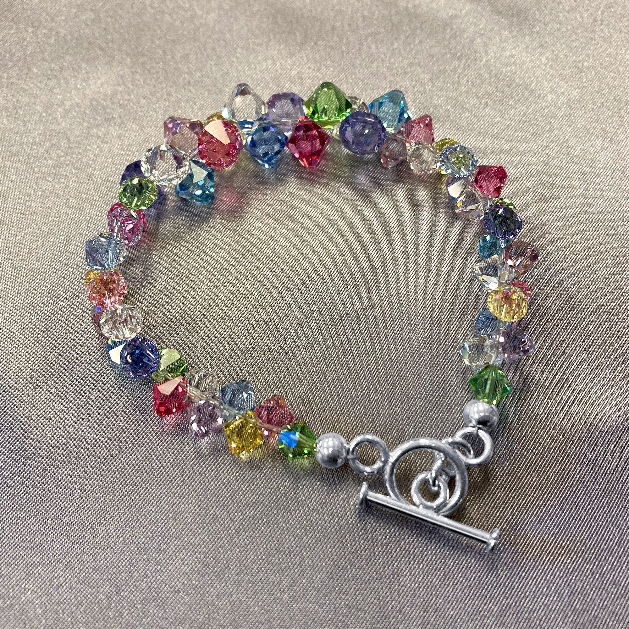 925 Gorgeous hand-crafted 7.5-inch bracelet with Cluster Style Bicone Austrian Crystals and 925 sterling silver toggle clasp with round bead accents. This stunning piece features a bouquet of hues in a variety of shapes, sizes, and faceted effects with smaller crystals accented throughout. Remember to check out our complementing crystal items for a perfect ensemble.