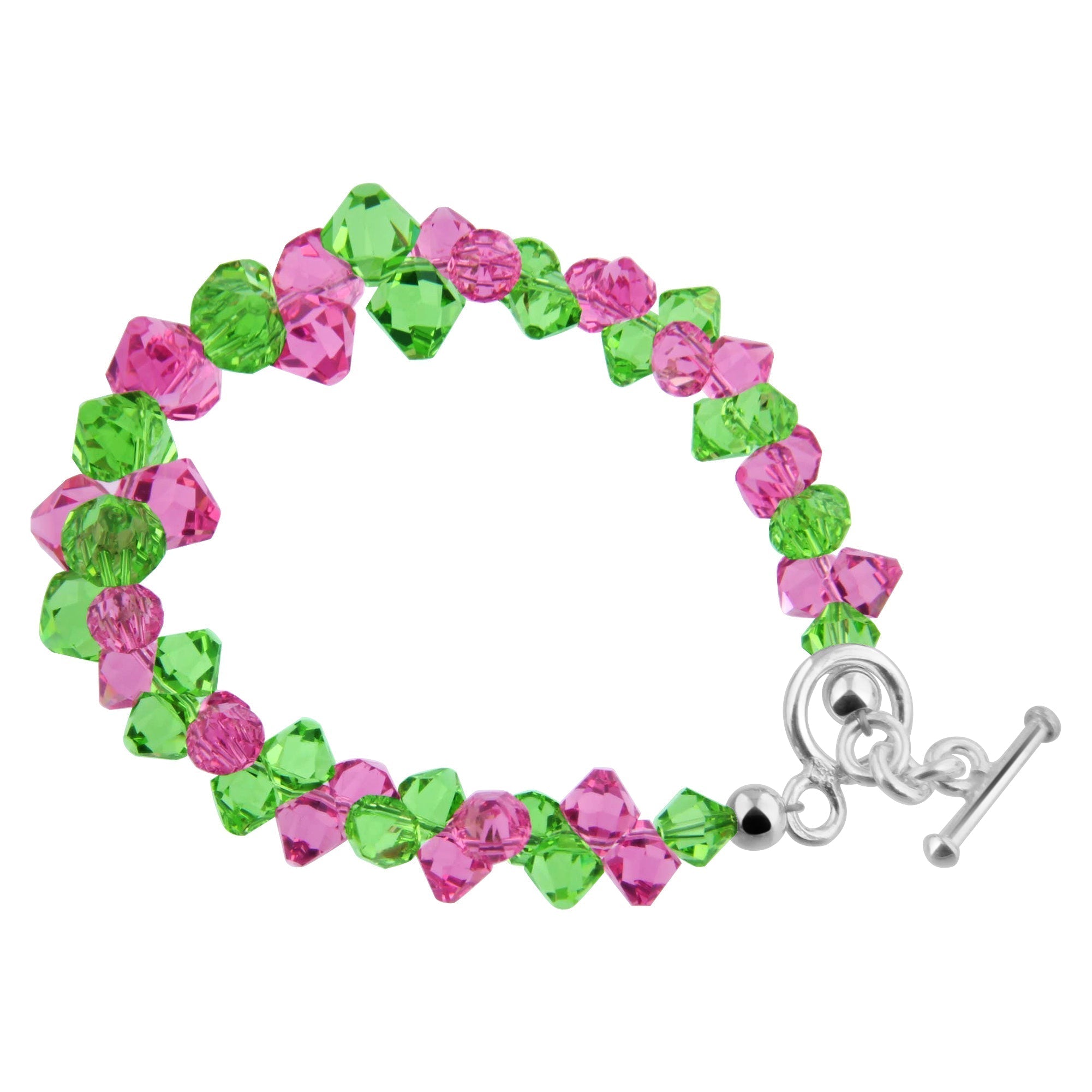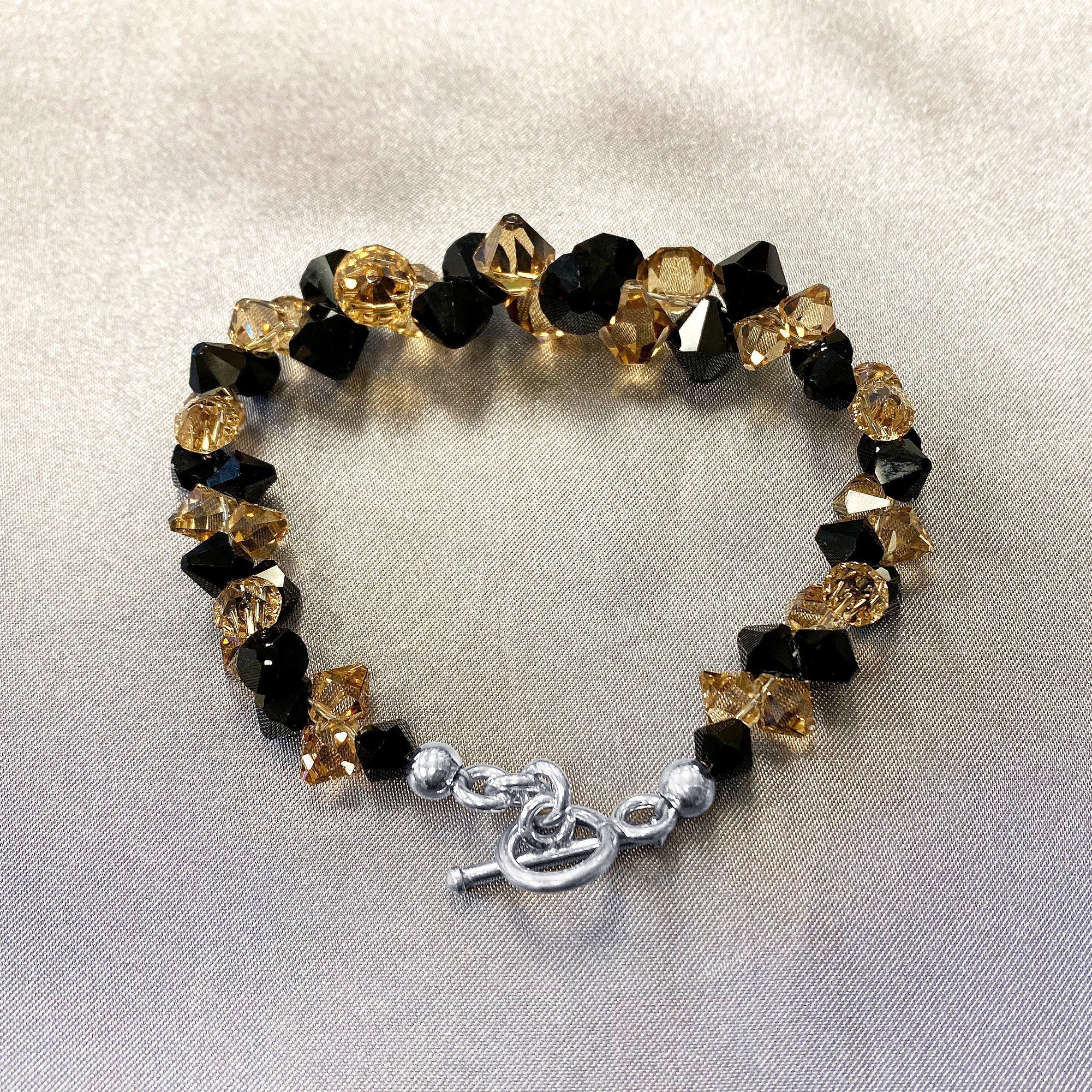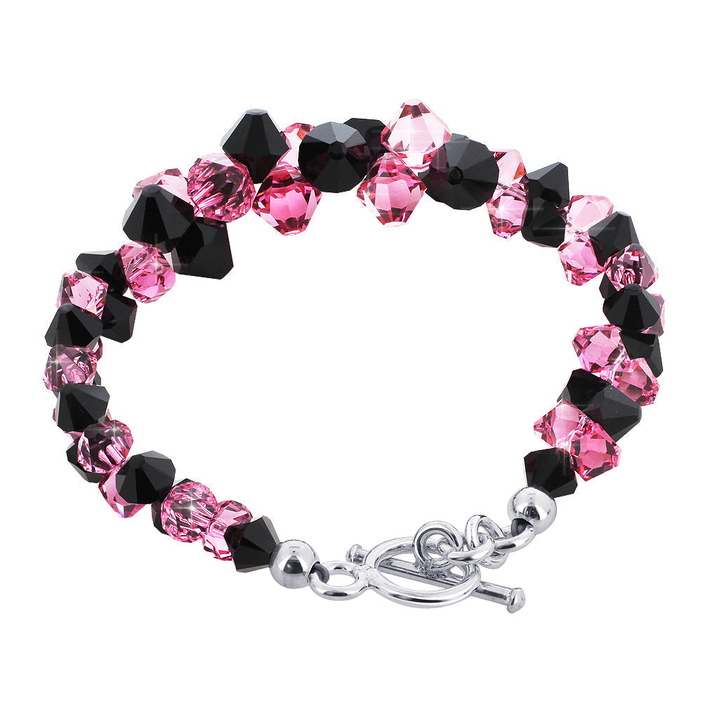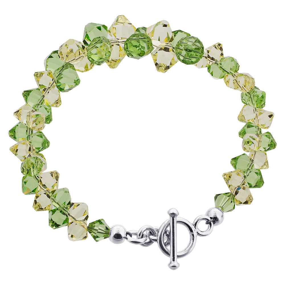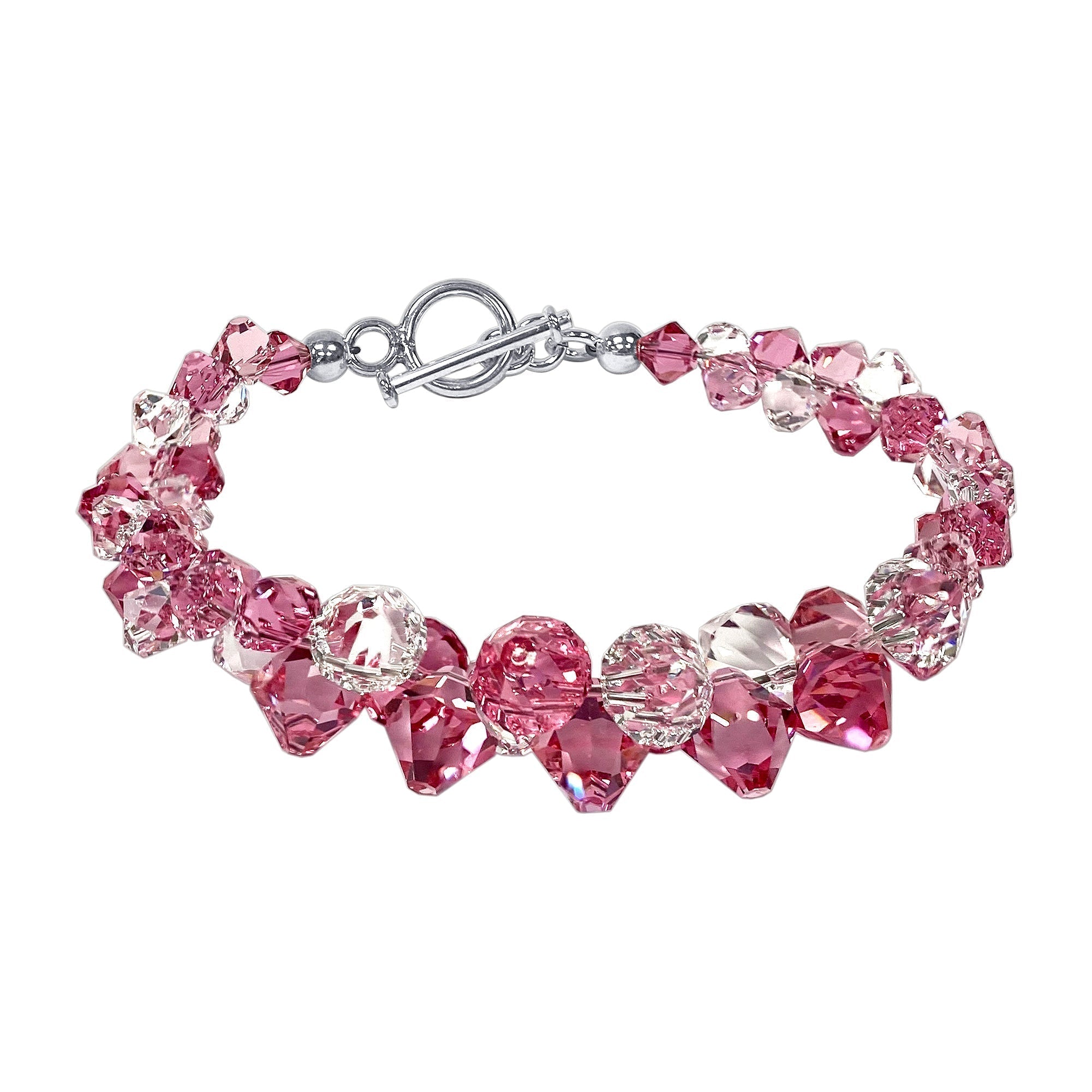 925 Gorgeous hand-crafted 7.5-inch bracelet with Cluster Style Bicone Austrian Crystals and 925 sterling silver toggle clasp with round bead accents. This stunning piece features a bouquet of hues in a variety of shapes, sizes, and faceted effects with smaller crystals accented throughout. Remember to check out our complementing crystal items for a perfect ensemble.