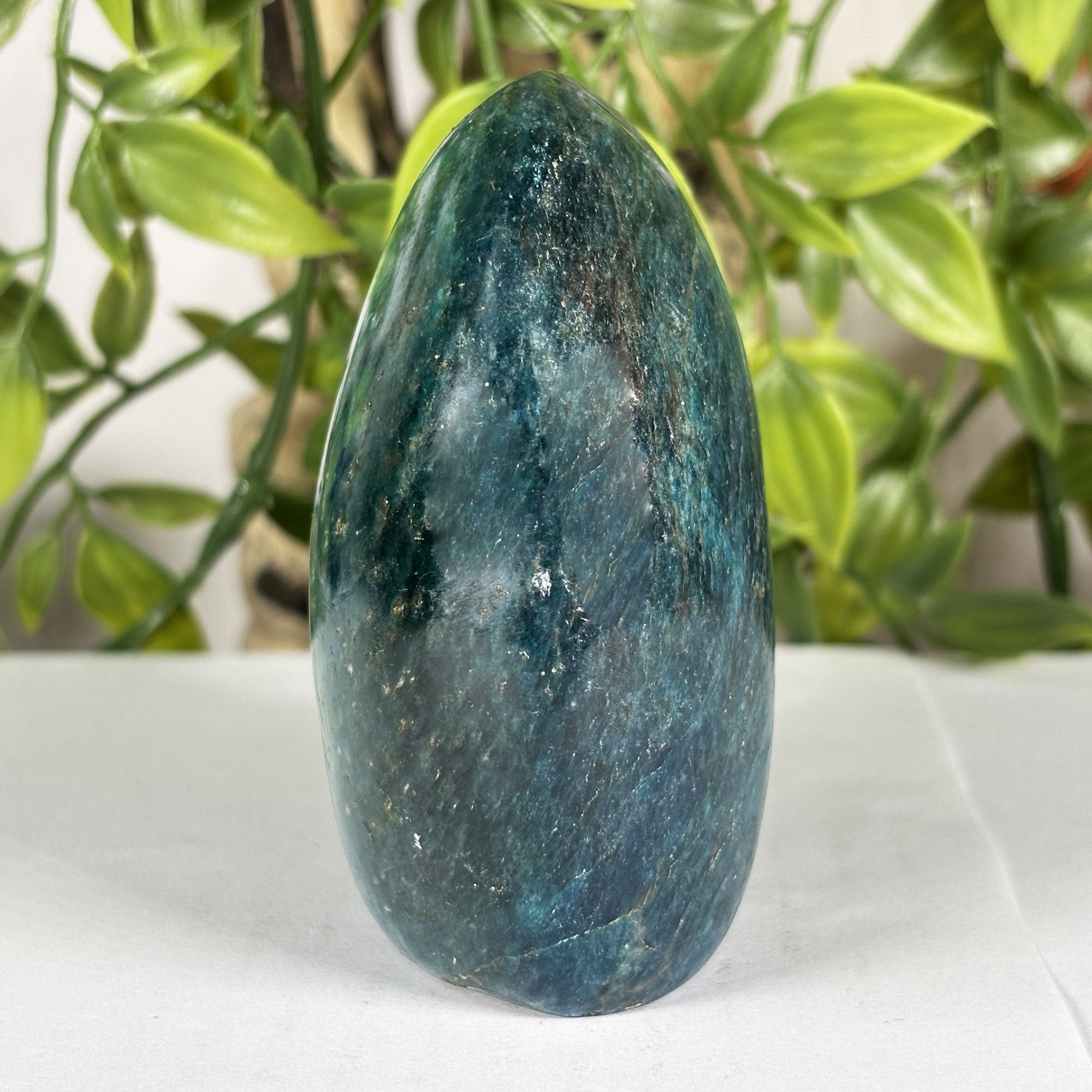 This compact blue apatite freeform is an ideal entry point into Madagascar blue apatite collecting, offering genuine specimen quality in a size that fits comfortably on a desk corner, bookshelf, nightstand, or meditation space without overwhelming the surrounding area. Blue apatite is widely celebrated for its connection to mental clarity, focused thinking, and open communication, and this smaller freeform carries that energy in a form that is easy to hold, easy to place, and easy to gift. Whether you are adding to an existing collection, looking for a meaningful and visually striking natural crystal, or searching for a unique gift for a crystal enthusiast, this Madagascar blue apatite freeform delivers exceptional color and natural quality in a compact and highly accessible form that will be appreciated for years to come.
